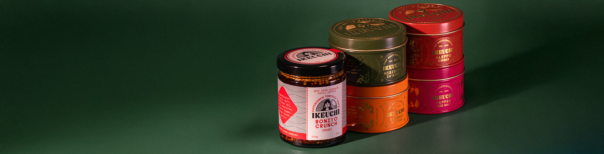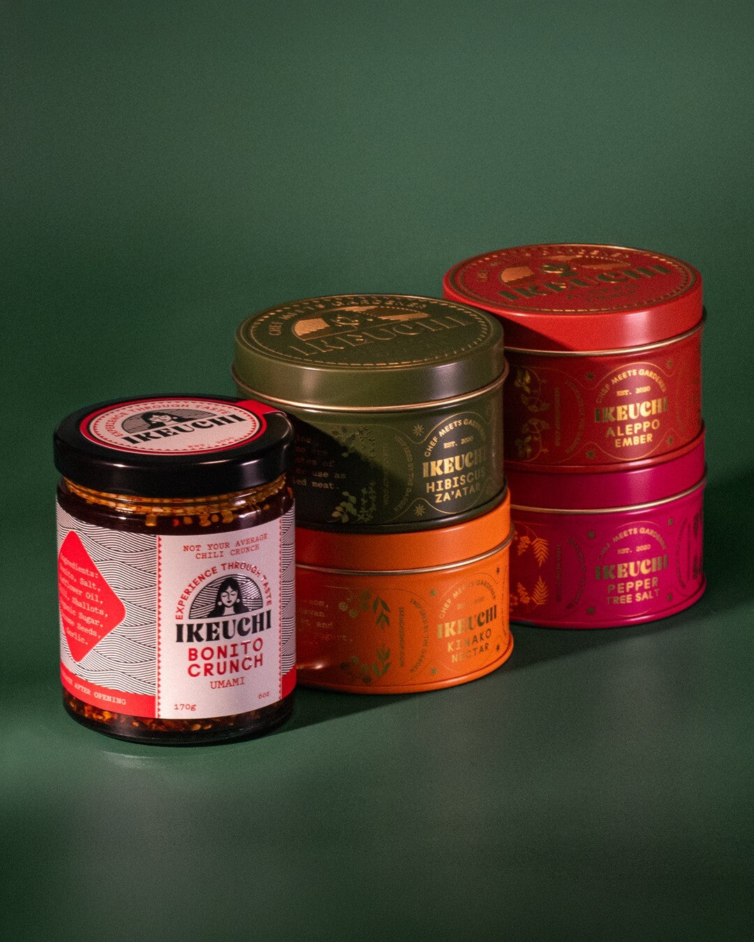The Ikeuchi Finishing Set brings together all five of Chef Casey Felton’s signature products — a toolkit for adding depth, brightness, heat, and texture to any dish.