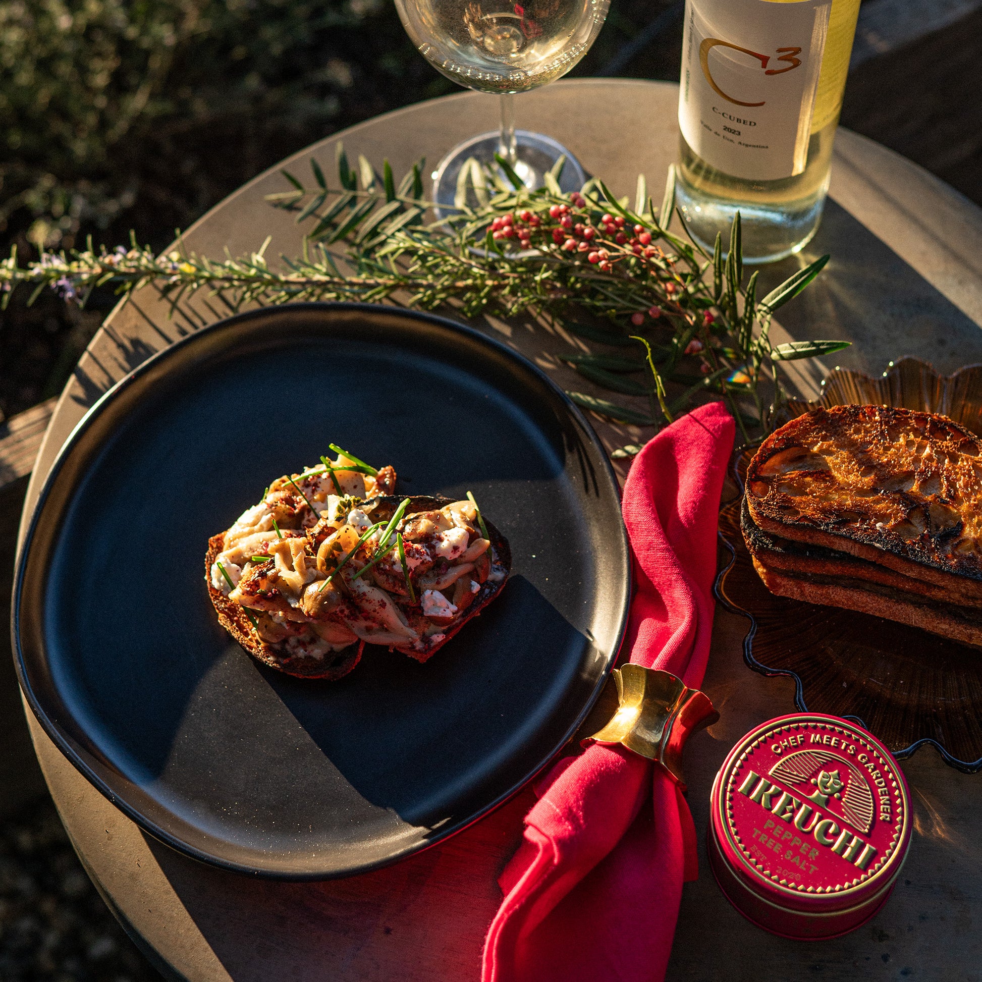 Add our Pepper Tree Salt to your oyster mignonette. A mignonette is traditionally made with brunoised (small diced) shallots macerated in champagne vinegar and finished with a crack of black pepper.